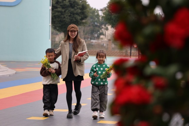 春暖花開(kāi)之際,浙江省諸暨市暨南街道街亭幼兒園的孩子們和老師紛紛走出教室感受春天,樂(lè)享校園的美景。中國(guó)教育報(bào)-中國(guó)教育新聞網(wǎng)通訊員 陳霞芳 攝