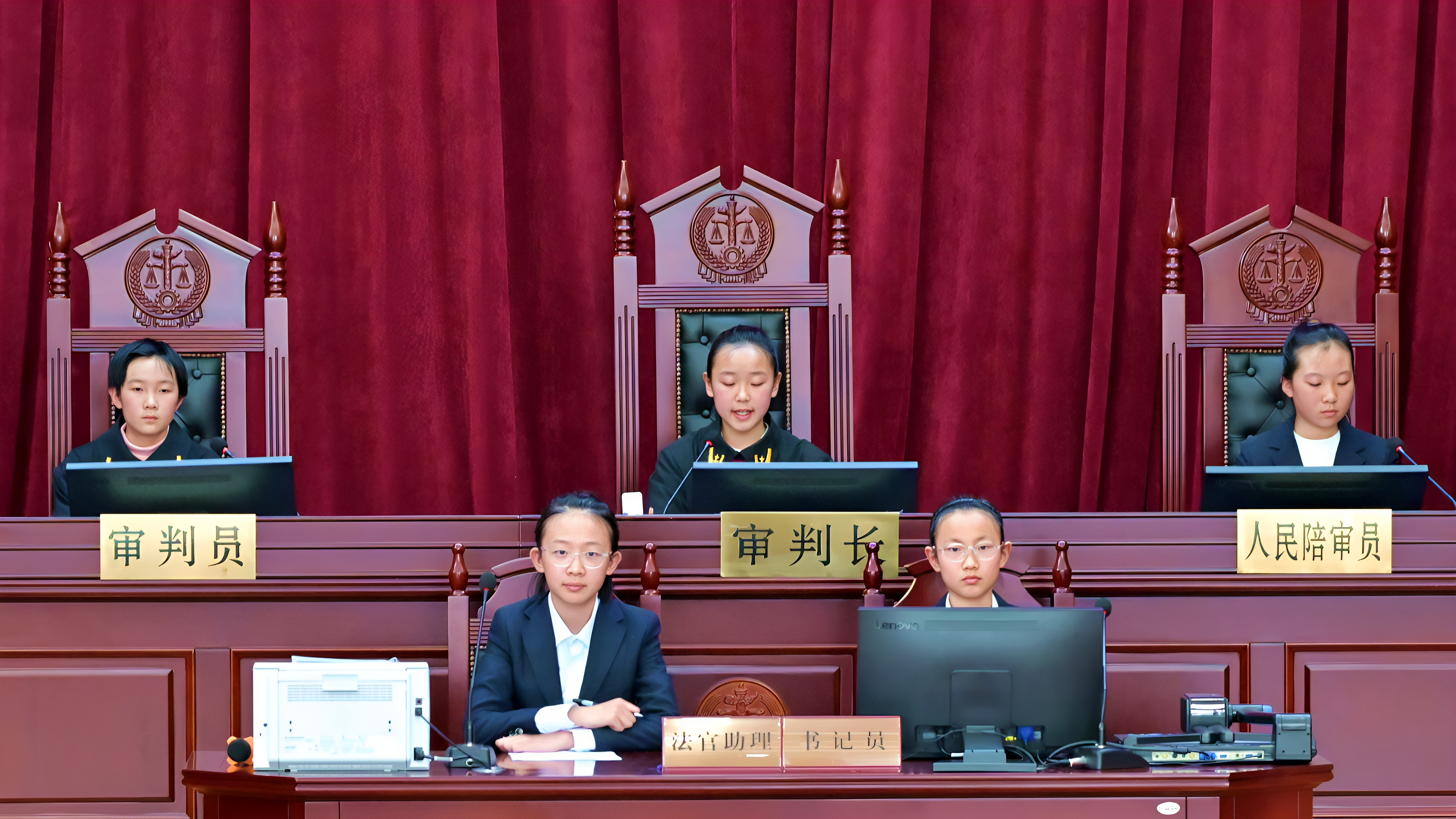 庭審現(xiàn)場,華亭市東華小學(xué)代表隊(duì)以“盜竊案”為劇本,帶來一堂有教育意義的法治公開課。陳龍 攝