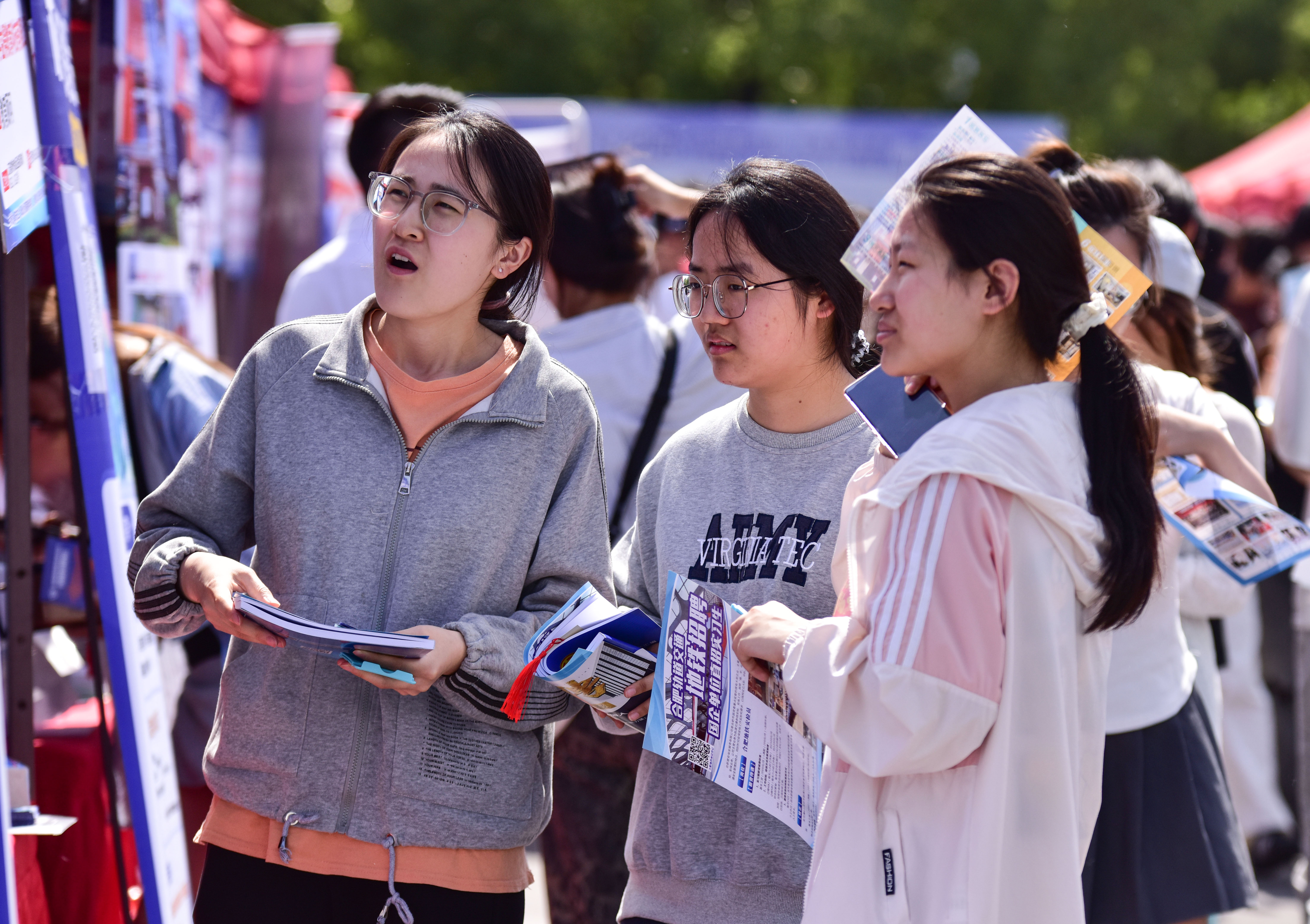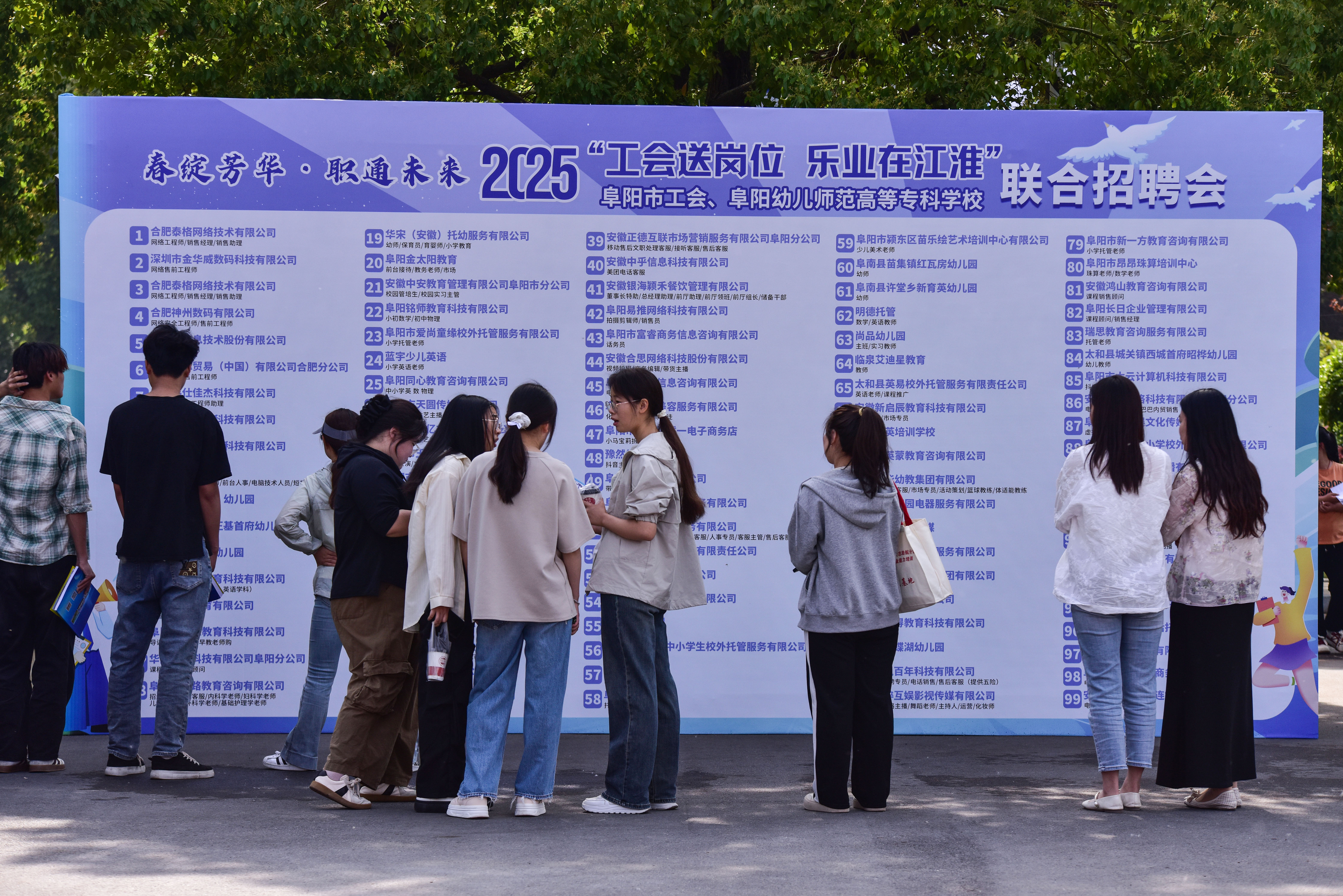 4月29日,“春綻芳華·職通未來——2025年‘工會送崗位 樂業(yè)在江淮’”安徽阜陽市工會、阜陽幼兒師范高等??茖W(xué)校聯(lián)合招聘會舉行,共有近百家用人單位提供3000余個崗位,吸引眾多應(yīng)屆畢業(yè)生前來應(yīng)聘。(中國教育報-中國教育新聞網(wǎng)通訊員 盧啟建 攝)