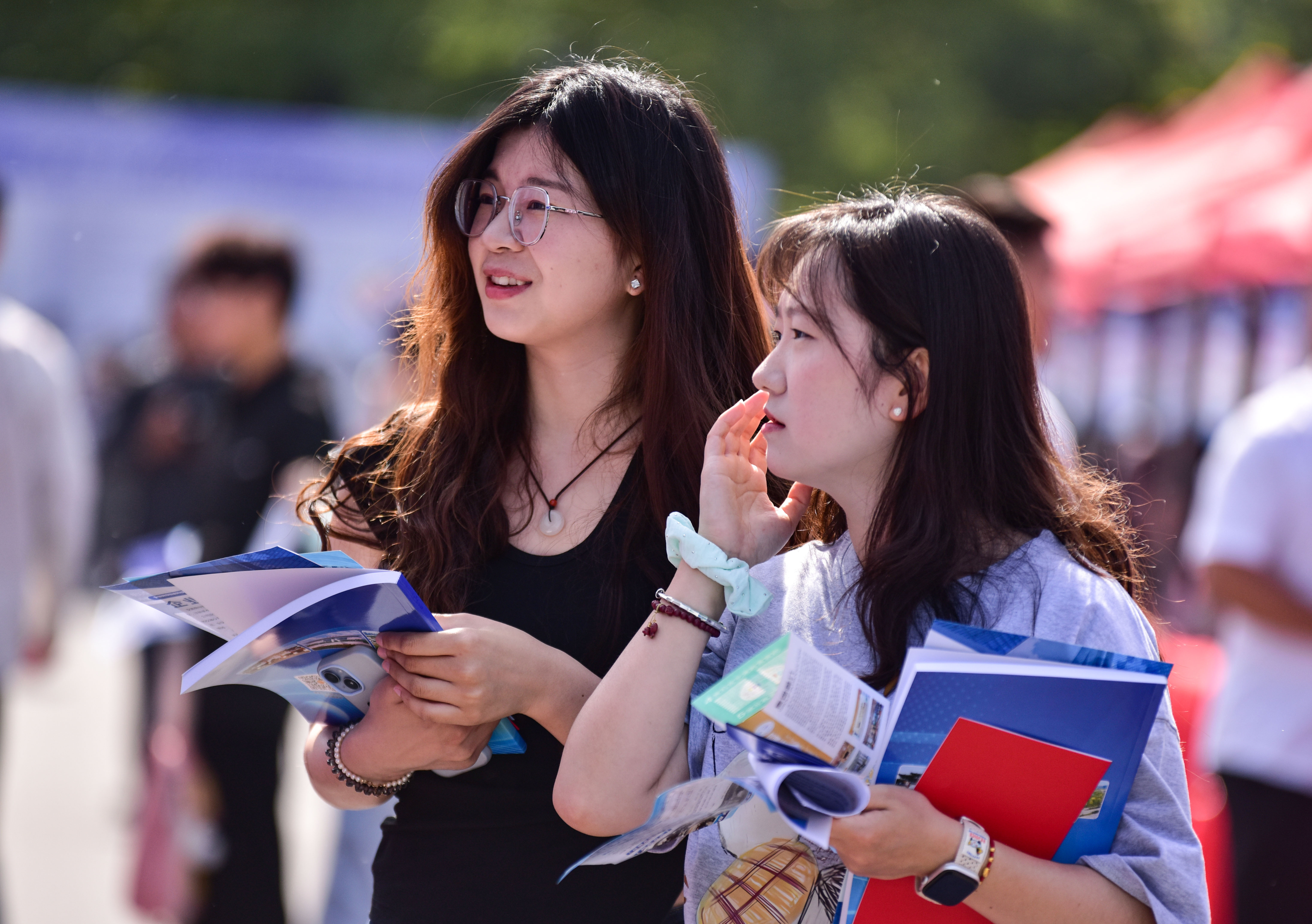 4月29日,求職學(xué)生在校園招聘會上查看招聘信息。盧啟建 攝