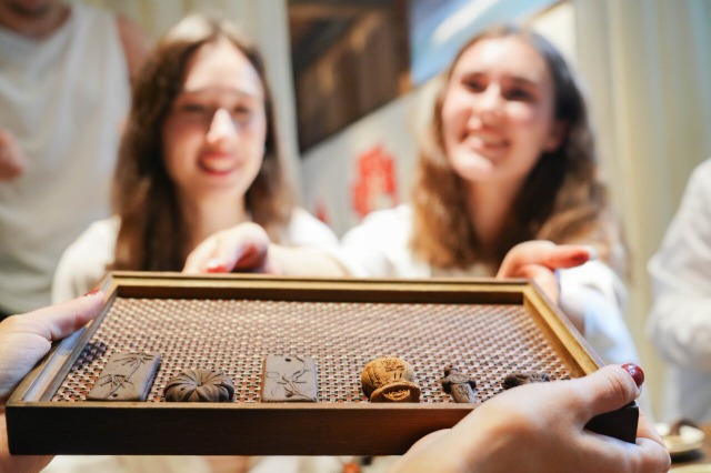 5月8日,西南大學(xué)外國(guó)語學(xué)院開展“走近非遺文化 手工香牌制作”活動(dòng),組織20多名俄羅斯留學(xué)生來到北碚區(qū)金剛碑歷史文化街區(qū),體驗(yàn)香牌制作技藝,感受非遺文化魅力。中國(guó)教育報(bào)-中國(guó)教育新聞網(wǎng)通訊員 秦廷富 攝