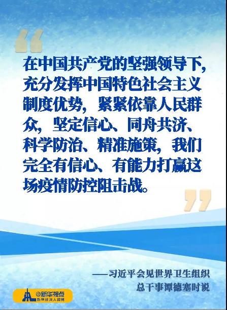 正如譚德塞所言,對(duì)于此次疫情防控,習(xí)近平主席親自指揮、親自部署,展現(xiàn)出卓越的領(lǐng)導(dǎo)力。不僅“史無(wú)前例”地在農(nóng)歷新年第一天主持召開(kāi)中共中央政治局常務(wù)委員會(huì)會(huì)議,還多次作出重要指示批示。
