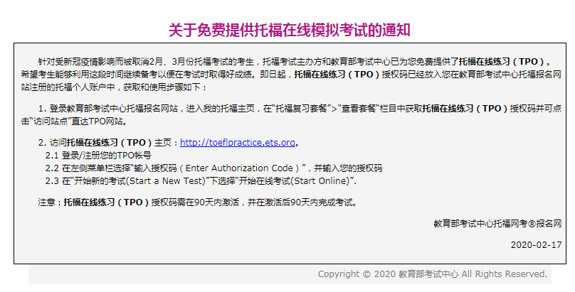 2)ETS宣布推出免費(fèi)的托福在線模擬考試(TPO)服務(wù)。