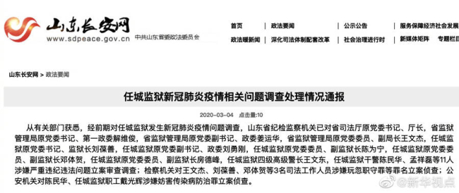 從有關(guān)部門獲悉,經(jīng)前期對(duì)任城監(jiān)獄發(fā)生新冠肺炎疫情問題調(diào)查,山東省紀(jì)檢監(jiān)察機(jī)關(guān)已對(duì)省司法廳原黨委書記、廳長,省監(jiān)獄管理局原黨委書記、第一政委解維俊,省監(jiān)獄管理局原黨委副書記、政委姜運(yùn)華,省監(jiān)獄管理局原黨委委員、副局長王文杰,任城監(jiān)獄原黨委書記、監(jiān)獄長劉葆善,任城監(jiān)獄原黨委副書記、政委劉勇剛,任城監(jiān)獄原黨委委員、副監(jiān)獄長陳為寧,任城監(jiān)獄原黨委委員、副監(jiān)獄長鄧體賀,任城監(jiān)獄原黨委委員、副監(jiān)獄長房德峰,任城監(jiān)獄四級(jí)高級(jí)警長王文東,任城監(jiān)獄干警陳民華、孟祥磊等11人涉嫌嚴(yán)重違紀(jì)違法問題立案審查調(diào)查;檢察機(jī)關(guān)對(duì)王文杰、劉葆善、鄧體賀等3名司法工作人員涉嫌玩忽職守罪等罪名立案?jìng)刹?;公安機(jī)關(guān)對(duì)陳民華、任城監(jiān)獄職工戴光輝涉嫌妨害傳染病防治罪立案?jìng)刹椤?/p>