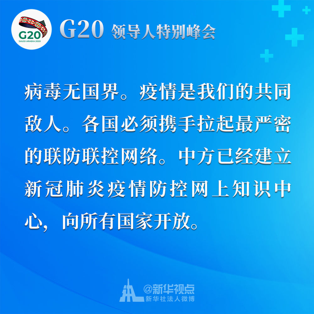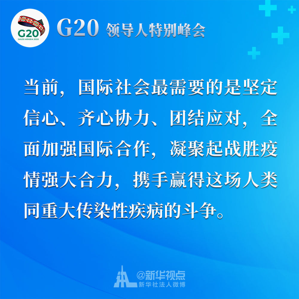 習(xí)近平在二十國(guó)集團(tuán)領(lǐng)導(dǎo)人應(yīng)對(duì)新冠肺炎特別峰會(huì)上重要講話金句↓