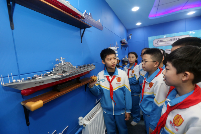 近日,天津市和平區(qū)首個(gè)海洋教室在耀華小學(xué)正式落成。該教室主要分為四大板塊,包括海底地形與衛(wèi)星遙感、仿生科技、大航海家和他們的船以及我國近年重要海洋科技成果。教室劃分多個(gè)功能區(qū),老師可以借助多種手段呈現(xiàn)海洋科學(xué)知識(shí),培養(yǎng)學(xué)生們建設(shè)海洋、保護(hù)海洋的責(zé)任感。(中國教育報(bào)—中國教育新聞網(wǎng)記者 陳欣然 攝)