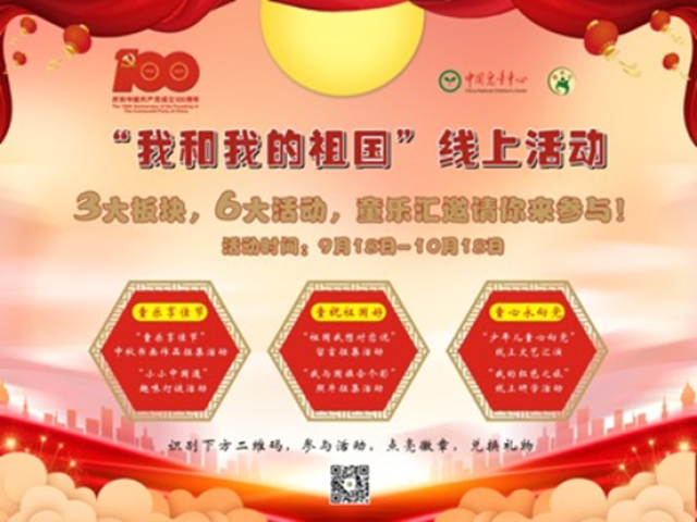 今年的“我和我的祖國(guó)”線上系列活動(dòng)以慶祝中國(guó)共產(chǎn)黨成立100周年為主線,立足愛國(guó)主義教育,內(nèi)容豐富、主題聚焦、特色鮮明、教育性強(qiáng),貼近兒童生活且富有儀式感。以“童樂享佳節(jié)”“童祝祖國(guó)好”“童心永向黨”三大版塊,豐富兒童及家庭假期生活,同時(shí)引導(dǎo)廣大少年兒童和家長(zhǎng)厚植愛家愛國(guó)愛黨情懷,培育和踐行社會(huì)主義核心價(jià)值觀。