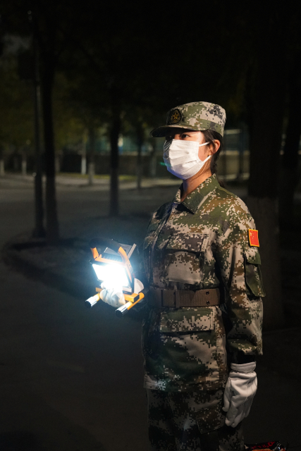 退役士兵先鋒隊手持照明設(shè)備,在校園值崗。蘭州財經(jīng)大學(xué)供圖