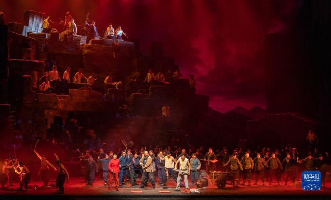 2021年4月20日,演員在國家大劇院表演民族歌劇《沂蒙山》。新華社記者 翟健嵐 攝
