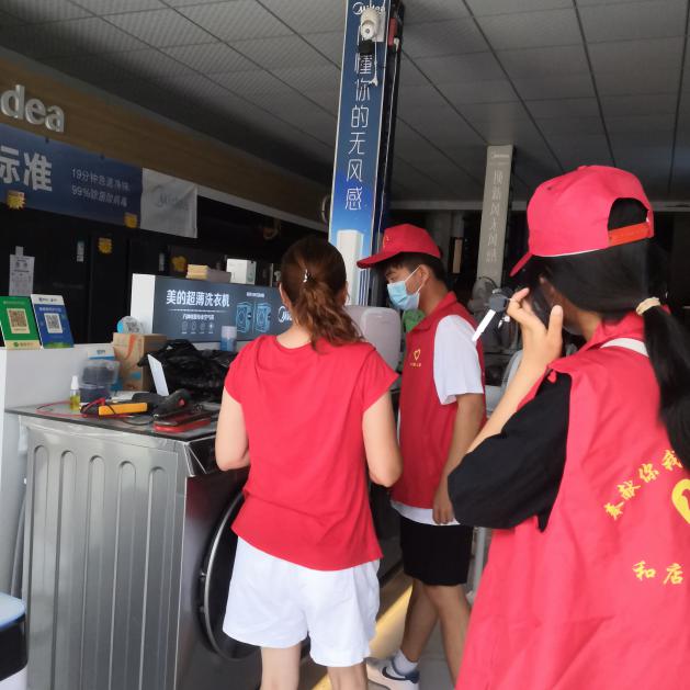 志愿者在街道檢查商鋪規(guī)范使用場所碼