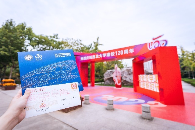據(jù)悉,西北大學(xué)校慶紀(jì)念郵折為三折卡折,由一版?zhèn)€性化郵票、一枚紀(jì)念郵資信封、一本個性化小本票三部分構(gòu)成。郵資信封圖將西北大學(xué)校訓(xùn)、120周年校慶標(biāo)識、校園建筑物線條圖、秦嶺、城墻等融入設(shè)計元素。郵資圖以竹簡剪影輪廓為造型,置入建校1902—2022年時間節(jié)點和學(xué)科文化視覺元素,上面鑲嵌西北大學(xué)?;眨c下面新打開的書籍和西大?;ㄓ裉m花組合,形成整體,寓意西北大學(xué)傳承120年,作育英才、繁榮學(xué)術(shù)、興學(xué)求強、以學(xué)報國。小本票以太白校區(qū)大禮堂、科研樓,長安校區(qū)體育館、圖書館和學(xué)生活動中心等校園標(biāo)志性建筑為主圖。小本票圖案由2020級化學(xué)與材料科學(xué)學(xué)院應(yīng)用化學(xué)專業(yè)學(xué)生王亦卓和2021級藝術(shù)學(xué)院藝術(shù)品品鑒與修復(fù)專業(yè)學(xué)生任嘉怡共同構(gòu)思、繪制而成,飽含著西大學(xué)子對學(xué)校120周年華誕的美好祝愿。