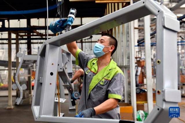 在山東羅賽羅德健康產(chǎn)業(yè)有限公司,工作人員在加工健身器材(2022年6月1日攝)。新華社記者 郭緒雷 攝