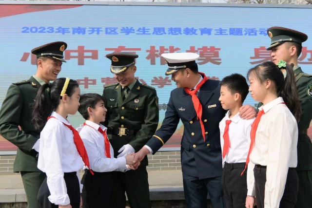 學(xué)雷鋒活動(dòng)在中營(yíng)小學(xué)已持續(xù)開展了60年。在今年的學(xué)雷鋒活動(dòng)中,中營(yíng)小學(xué)開展了“心中有楷模 身邊有榜樣”學(xué)楷模主題教育活動(dòng),陸軍軍事交通學(xué)院學(xué)員五大隊(duì)政委和學(xué)員與全校師生共同參加。學(xué)員代表王香港帶來了一堂生動(dòng)的思政課,勉勵(lì)大家在生活和學(xué)習(xí)中繼續(xù)賡續(xù)紅色血脈,傳承雷鋒精神。
