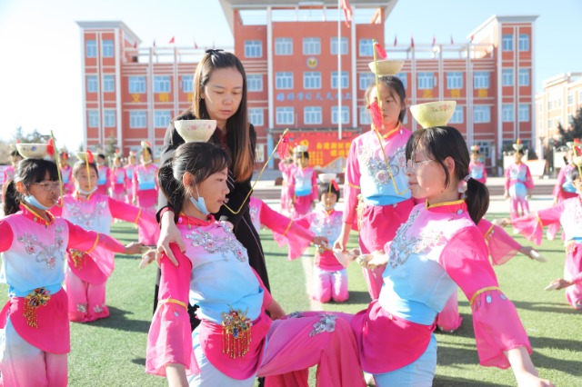 為更好落實(shí)“非遺”文化進(jìn)校園工作,學(xué)校在大課間活動(dòng)的基礎(chǔ)上,將每周一至周四的課后服務(wù)時(shí)間設(shè)為“非遺”文化專門的輔導(dǎo)時(shí)間。定時(shí)定點(diǎn)進(jìn)行“頂碗舞”的傳承和輔導(dǎo),從不間斷。