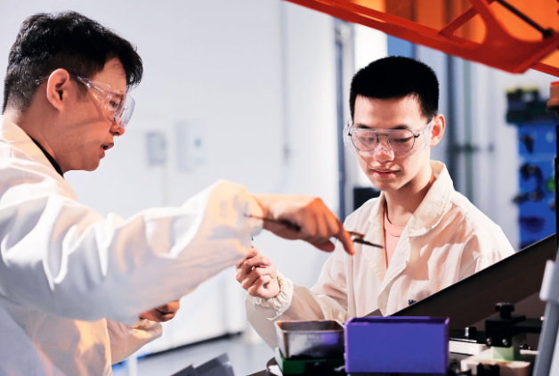姜奕帆(右)在導(dǎo)師指導(dǎo)下進(jìn)行科研實(shí)驗(yàn)