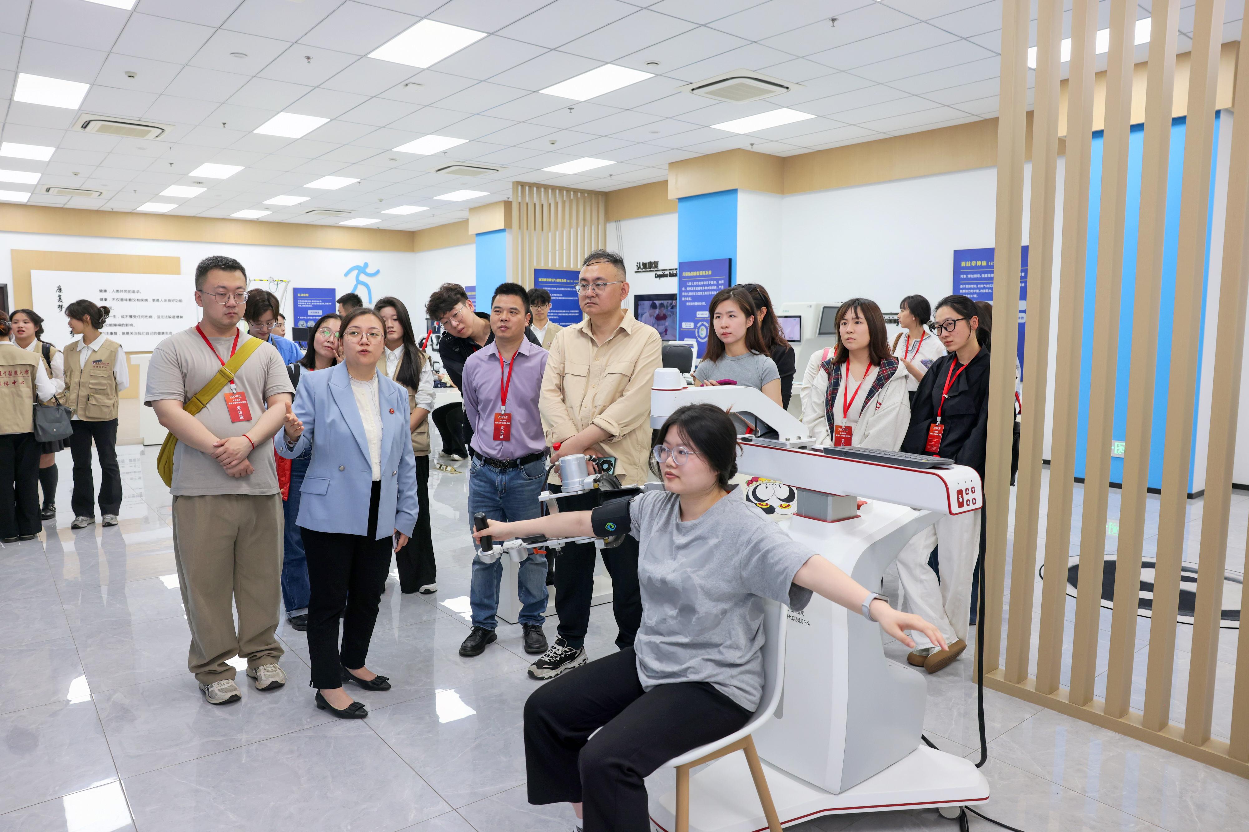 “哇!這個康復儀器可以這么玩?!碑斆襟w記者團走進康復產業(yè)研究院康復成果展示廳忍不住感嘆。