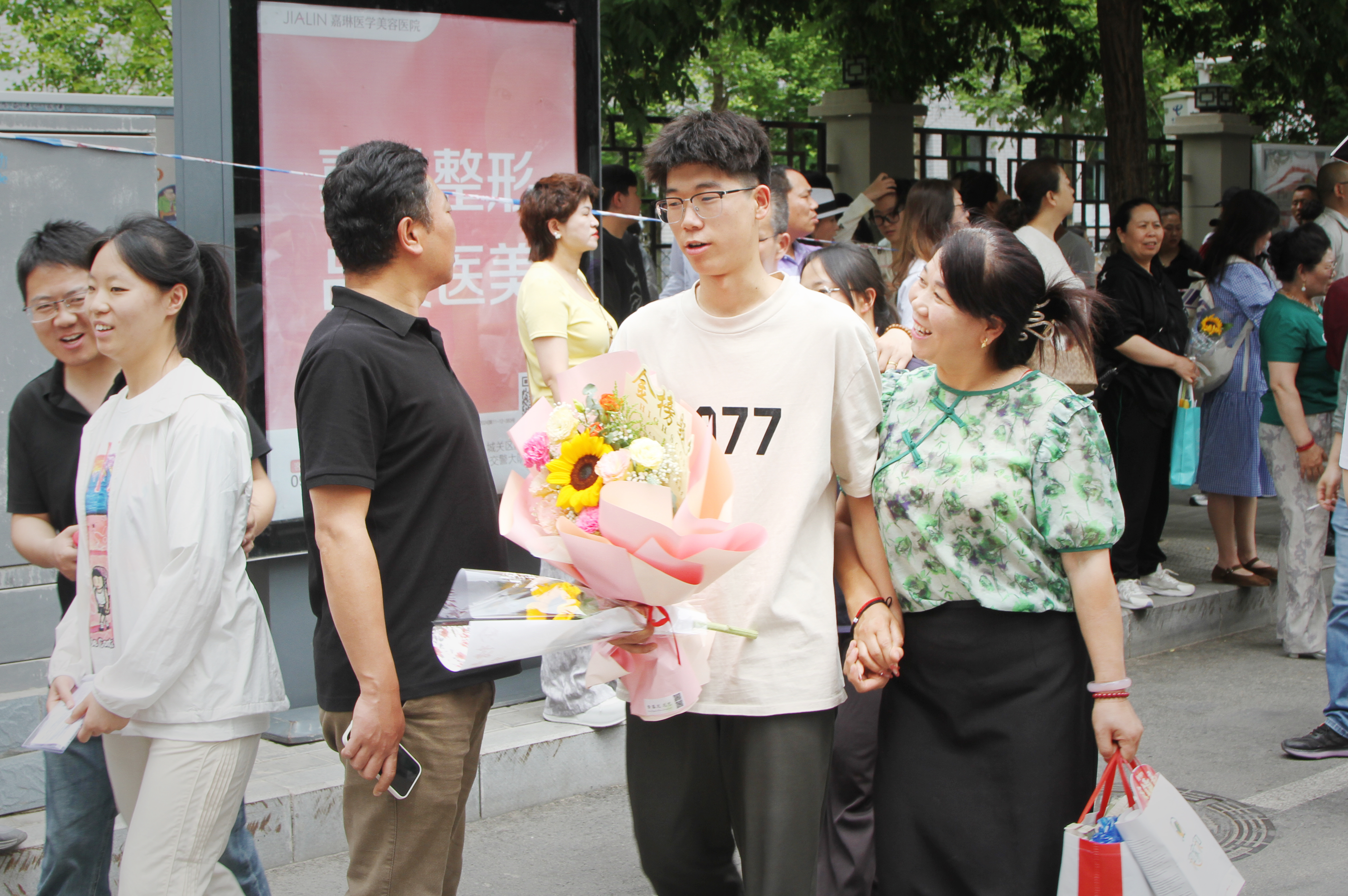 首場(chǎng)考試開(kāi)考前,蘭州一中教師在考場(chǎng)外暖心陪考送祝福,鼓勵(lì)學(xué)生從容應(yīng)對(duì)。(馬綺徽 攝).jpg