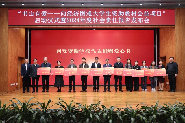 中國(guó)教育報(bào)-中國(guó)教育新聞網(wǎng)北京10月11日訊(記者 柴葳)今天上午,高等教育出版社(以下簡(jiǎn)稱(chēng)“高教社”)“書(shū)山有愛(ài)”向經(jīng)濟(jì)困難大學(xué)生資助教材公益項(xiàng)目啟動(dòng)儀式暨2024年度社會(huì)責(zé)任報(bào)告發(fā)布會(huì)在京舉辦。