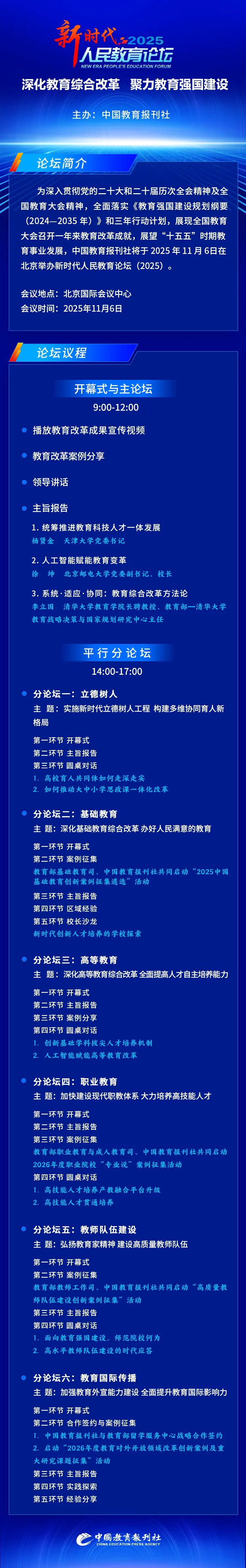 作為中國教育報(bào)刊社重點(diǎn)打造的年度高端論壇,新時(shí)代人民教育論壇旨在緊扣教育的政治屬性、人民屬性和戰(zhàn)略屬性,充分發(fā)揮教育主流媒體的平臺與渠道優(yōu)勢,致力于——