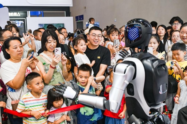 9月7日,觀眾在智博會上參觀人形機(jī)器人。新華社記者王全超攝