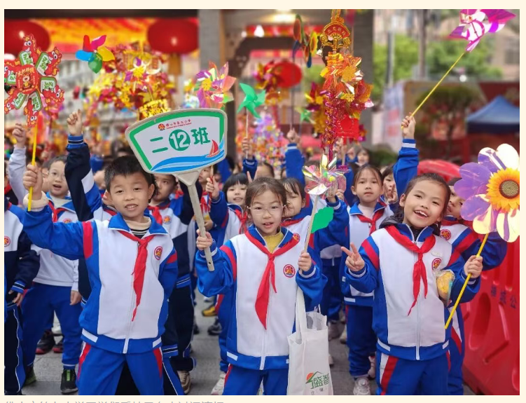 佛山市第九小學(xué)同學(xué)們手持風(fēng)車走過通濟(jì)橋