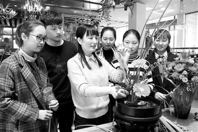 日前,在山東省棗莊市一個傳統(tǒng)插花培訓(xùn)基地,一位民間花藝師(左三)在向棗莊學(xué)院的大學(xué)生傳授傳統(tǒng)插花技藝。從當(dāng)日起,山東省棗莊學(xué)院開展為期一周的“學(xué)習(xí)插花技藝 感受傳統(tǒng)魅力”的社會實(shí)踐活動,組織260多名大學(xué)生走出校園,向民間花藝師學(xué)習(xí)傳統(tǒng)插花技藝,感受傳統(tǒng)插花藝術(shù)的魅力。吉喆 攝