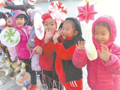 近日,天氣連續(xù)降溫。山東省高密市第二實(shí)驗(yàn)小學(xué)幼兒園抓住時(shí)機(jī),創(chuàng)新幼兒興趣活動,指導(dǎo)孩子們自己動手做剪紙、布藝、卡通動物,采集鮮花、綠葉等自然材料,放進(jìn)圓盤、瓶子等不同形狀的模具,澆進(jìn)水凍成奇妙的“冰花”,把幼兒園裝扮得五彩斑斕,如同夢幻的童話世界,給孩子們帶來了冬天的快樂。孫世杰 攝