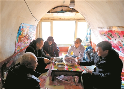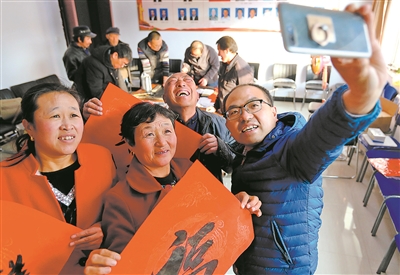 天色漸漸暗了下來。這邊,在村委會領春聯(lián)的村民還沒散去;那邊,五大娘拄著拐杖顫顫巍巍來叫大伙到她家吃飯,說自己炒菜快,不耽誤大家返城。說話間,村民王素花又風風火火趕來,把著車門不讓走,非讓大家到她家吃現(xiàn)做的黃米糕。