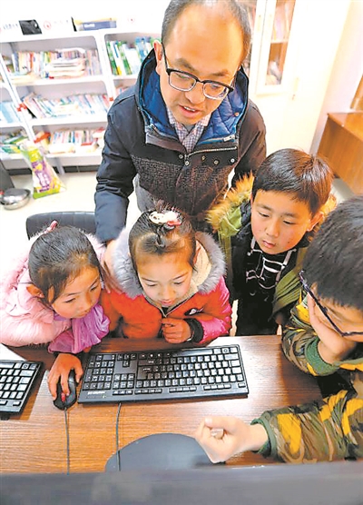 秦巨合與趕來幫忙的張家口市職教中心教師王旭峰顧不上一路顛簸,鋪開紅紙,開始寫春聯(lián);賈煒打開電腦,輔導小學生玩起《開心辭典》;籍瑞豐清點整理太陽能路燈,為安裝做準備。