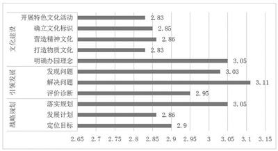 園長(zhǎng)價(jià)值領(lǐng)導(dǎo)素養(yǎng)和教育教學(xué)素養(yǎng)較為薄弱。在三大核心專(zhuān)業(yè)素養(yǎng)中,園長(zhǎng)組織管理素養(yǎng)尚佳,能夠較好駕馭園所的法務(wù)與安全管理以及財(cái)務(wù)和物資配置,但是價(jià)值領(lǐng)導(dǎo)素養(yǎng)不足,缺乏園所文化建設(shè)和戰(zhàn)略引領(lǐng)能力。園長(zhǎng)對(duì)教育教學(xué)素養(yǎng)最不自信,在教職工發(fā)展規(guī)劃、招聘選拔制度和完善薪酬福利體系上表示困難,在引導(dǎo)園所的課程改革與創(chuàng)新上尤為不足。