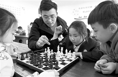 圖為六安路小學(xué)翠微分校的學(xué)生在“三點(diǎn)半課堂”上學(xué)習(xí)國際象棋。