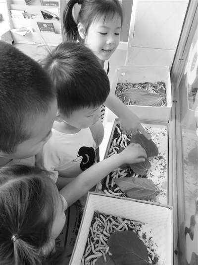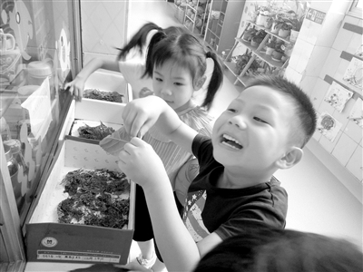 又一迫切的問題擺在孩子們面前。他們著急起來,有人說可以多放一些桑葉,又擔(dān)心糞便沒人清理,也有人提議請保安爺爺幫忙照顧,可是這樣太麻煩人,且桑葉也不夠吃。最后,他們商定雙休日由值日生把蠶寶寶帶回家養(yǎng)。