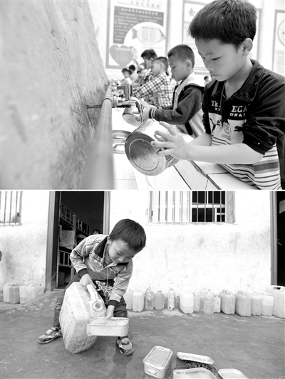 八好小學(xué)有400多名學(xué)生,曾僅有一個(gè)不足100立方米的水柜,用于收集儲(chǔ)存樓頂?shù)挠晁?,學(xué)生需定期定量用水。遇到長(zhǎng)時(shí)間不下雨,學(xué)校需要到鄉(xiāng)政府所在地運(yùn)水。如今,學(xué)校修建了5個(gè)大水柜,并從兩公里外引泉水到校園,“飲水難”問題得到解決。