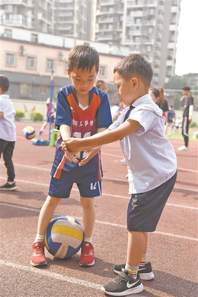 結(jié)合學前教育宣傳月“科學做好入學準備”主題,日前,四川省成都市金牛區(qū)機關第二幼兒園組織大班幼兒走進石筍街小學,觀摩小學環(huán)境、體驗小學生活,與小學的哥哥姐姐一起活動、學習,建立良好的情感,從而促使幼兒對小學生活有更深入的認識、更積極的向往。
