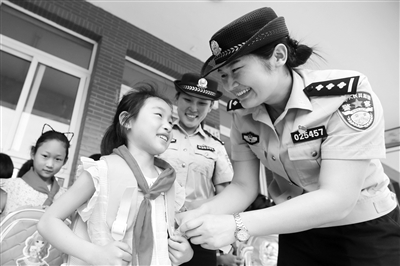 5月24日,“愛心警察媽媽”為鄉(xiāng)村留守兒童送上新書包。當(dāng)日,安徽省淮北市公安局相山分局組織女民警帶著書包、籃球、足球、跳繩等,來到轄區(qū)渠溝鎮(zhèn)郭王村高溪小學(xué)走訪慰問留守兒童。近年來,淮北市相山公安分局組織全局女民警開展?fàn)幃?dāng)“愛心警察媽媽”活動(dòng),每名女民警與一名鄉(xiāng)村留守兒童結(jié)對(duì)子,利用業(yè)余時(shí)間走訪幫扶,呵護(hù)孩子們健康成長(zhǎng)。萬善朝 攝
