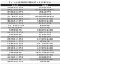 今年,高職質(zhì)量年報(bào)繼“服務(wù)貢獻(xiàn)50強(qiáng)”“國際影響力50強(qiáng)”和“教學(xué)資源50強(qiáng)”后,首次評(píng)出“育人成效50強(qiáng)”,體現(xiàn)出我國高職教育育人本位、立德樹人的核心理念。評(píng)價(jià)采用的指標(biāo)來自學(xué)生就業(yè)創(chuàng)業(yè)、學(xué)生在校體驗(yàn)、學(xué)生技能培養(yǎng)三個(gè)維度的16個(gè)項(xiàng)目,包括就業(yè)率、畢業(yè)三年職位晉升比例、留在當(dāng)?shù)鼐蜆I(yè)比例、教書育人滿意度、課程教學(xué)滿意度、各類大賽等。50強(qiáng)院校在上述方面成效明顯,畢業(yè)生就業(yè)率和職位晉升比例提升明顯,學(xué)生對(duì)課程教學(xué)、管理服務(wù)等方面的滿意度高于一般院校,學(xué)生技術(shù)技能方面的培養(yǎng)效果好。
