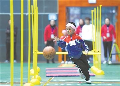 日前,重慶市首屆幼兒體適能運(yùn)動會在大渡口區(qū)體育館舉行,當(dāng)?shù)?3支幼兒園代表隊(duì)參賽。據(jù)悉,本屆運(yùn)動會設(shè)有幼兒個人項(xiàng)目和親子項(xiàng)目。運(yùn)動會賽場上,參賽選手通過綜合賽道、勇往直前、仰臥起坐傳球、“瘋狂炸彈”、親子接力等競賽項(xiàng)目進(jìn)行歡樂角逐。圖為幼兒進(jìn)行綜合賽道項(xiàng)目比賽。視覺中國 供圖