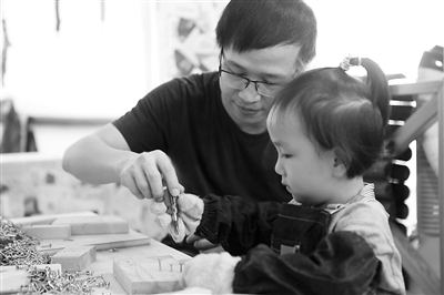 活動(dòng)采用公眾號(hào)發(fā)布信息、家長(zhǎng)預(yù)約報(bào)名參與體驗(yàn)的方式。在木工坊,當(dāng)幼兒在爸爸的幫助下,戴上手套,拿起工具,鋸斷一根根木條,擰上一顆顆螺絲,做成一個(gè)個(gè)小作品時(shí),他的眼睛里閃著興奮的光。在美術(shù)室陶泥區(qū),幼兒雙手搓、揉、捏著陶泥,在媽媽的幫助下把它盤(pán)成一個(gè)漂亮的花瓶,媽媽贊賞的眼光讓幼兒心懷喜悅。