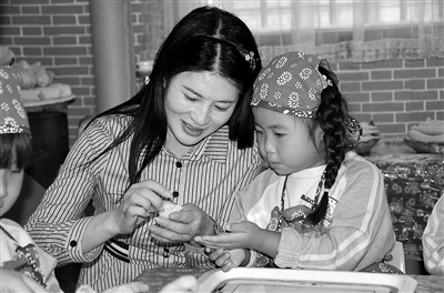 做一做:自己動手制作燙面角。為了傳承新安優(yōu)秀的美食文化,幼兒園創(chuàng)設了“食育工坊”特色活動室,這里散發(fā)著濃郁的傳統(tǒng)風味,成了幼兒最開心、最盼望、最喜歡的地方。他們排隊洗手,相互幫忙戴好圍裙、頭巾,做好了活動前的各項準備,并做好計劃和分工,有人做餡料,有人搟皮,有人包燙面角,一個個有趣的燙面角在孩子們的手中呈現。他們時不時還要比一比,看誰做得最好看,并給自己做的燙面角起個好聽的名字。燙面角做好之后要等待蒸熟才能品嘗,在等待的環(huán)節(jié),孩子們分工收拾衛(wèi)生,有人刷盤子、筷子,有人擦桌椅,有人擺碗筷。整個活動,從準備材料到品嘗美食,全部由孩子們自主參與,他們的動手操作能力、語言表達能力、交往能力都有了很大提高,也體會到自己制作美食所帶來的樂趣、滿足和幸福。