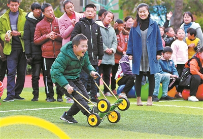 日前,江蘇省淮安市特殊教育學(xué)校學(xué)生在操場上進行康復(fù)活動。該校堅持“我運動,我快樂,我健康”的指導(dǎo)思想,在康復(fù)課程中融入游戲、競技、音樂等內(nèi)容,讓孩子們快樂成長。本報記者 張學(xué)軍 攝