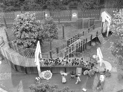 我園后操場(chǎng)有一塊1000多平方米的場(chǎng)地,環(huán)線全長(zhǎng)達(dá)150米。建園初期安放了一批大型組合器械和小型鉆爬、平衡類器械,功能固化、單一,遠(yuǎn)遠(yuǎn)滿足不了孩子們運(yùn)動(dòng)和開展游戲的需求。于是我們思考:怎樣從兒童視角創(chuàng)建一個(gè)充滿尊重信任、多功能多層次的戶外活動(dòng)環(huán)境?環(huán)境如何引發(fā)并滿足幼兒運(yùn)動(dòng)、交往、探索與表達(dá)表現(xiàn)等活動(dòng)需要?如何從管理視角審視現(xiàn)有環(huán)境,進(jìn)一步開發(fā)、優(yōu)化環(huán)境功能?這一系列問(wèn)題擺在我們眼前。