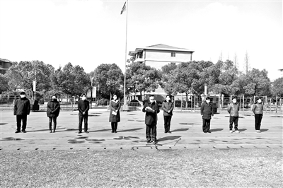 “愿重逢泓園,你已成長”。3月2日,江蘇省泰州市第二中學(xué)舉行升旗儀式和國旗下講話,全體學(xué)生居家接受線上教育。圖為學(xué)校里的升旗儀式上,校長戴榮在國旗下講話。下圖為該校高三(6)班徐之恒同學(xué)在家中參加儀式。該校決定從3月份開始,每周正常舉行升旗儀式?!笆窍胪ㄟ^這樣的方式提醒同學(xué)們,一寸光陰一寸金;在學(xué)好文化知識(shí)的同時(shí)更應(yīng)知道社會(huì)即課堂、生活即教育”。同時(shí)告訴同學(xué)們:“校長想你們了,老師想你們了,校園想你們了,我們相見于校園的時(shí)間不會(huì)太久了!”朱濤 圖/文