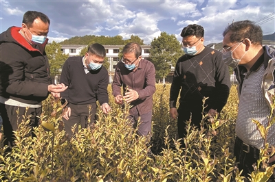 3月1日,浙江農(nóng)林大學(xué)教授蘇祝成(右三)在浙江省麗水市遂昌縣的一個茶葉基地對春茶受凍情況進(jìn)行實地調(diào)研指導(dǎo)。眼下,疫情逐漸向好,又正值春耕生產(chǎn)的關(guān)鍵時期,浙江農(nóng)林大學(xué)近百名專家教授組成10多支科技服務(wù)團(tuán)隊分赴全省各地,全力為春耕生產(chǎn)提供科技支撐。