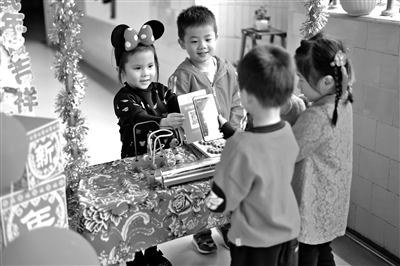 在實(shí)施幼兒生活滲透式課程的實(shí)踐中,要體現(xiàn)“四個(gè)要義”,即以生活為核心,以游戲?yàn)橥黄瓶?,以民族文化為載體,以情感為紐帶,四者并舉,相互支撐,才能達(dá)成課程目標(biāo)。關(guān)于“以生活為核心,以游戲?yàn)橥黄瓶凇保拔囊延休^多介紹,以下著重談?wù)劇耙悦褡逦幕癁檩d體,以情感為紐帶”。