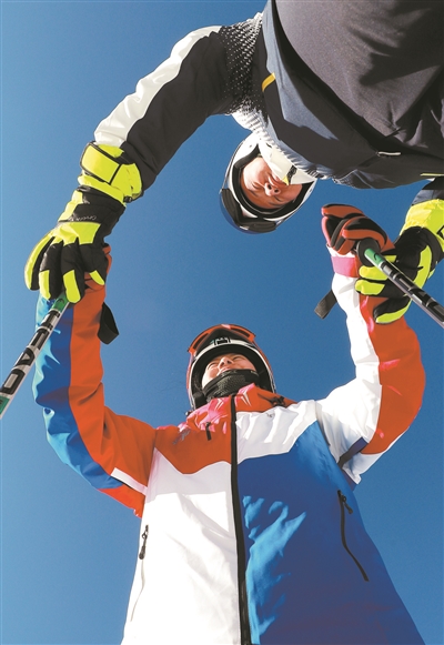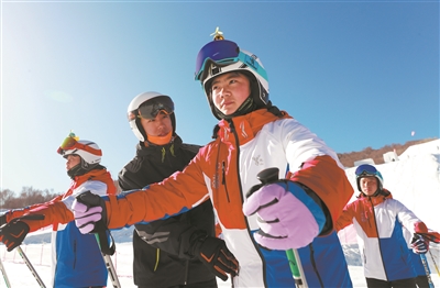 冬日里的一天,艷陽(yáng)高照。在河北省張家口市崇禮云頂滑雪場(chǎng)一角,來(lái)自張家口市職教中心的20多名學(xué)生圍成一圈,認(rèn)真聽(tīng)教練講解動(dòng)作要領(lǐng)、注意事項(xiàng)。只見(jiàn)教練一會(huì)兒蹲下,一會(huì)兒站起,一會(huì)兒又拉過(guò)一名學(xué)生作示范。實(shí)訓(xùn)課告一段落,摘下頭盔的教練原來(lái)跟這群學(xué)生一般模樣。他叫丁文浩,現(xiàn)在是河北體育學(xué)院“3+4”冰雪運(yùn)動(dòng)本科專(zhuān)業(yè)大二年級(jí)學(xué)生。
