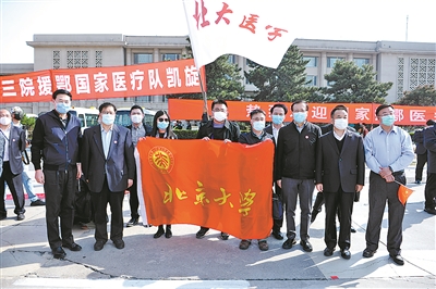 “兩個多月來在疫情最危險、任務(wù)最艱巨、人民最需要的地方,你們不畏艱險,沖鋒在前,舍生忘死,與死神賽跑,與病魔搏斗,搶救了眾多患者生命,為打贏武漢保衛(wèi)戰(zhàn)作出重要貢獻(xiàn)。你們用赤子之心和愛國情懷續(xù)寫了北大愛國進(jìn)步的英雄篇章,你們的英雄事跡必將載入史冊。”北京大學(xué)黨委書記邱水平向醫(yī)療隊成員致以崇高敬意。
