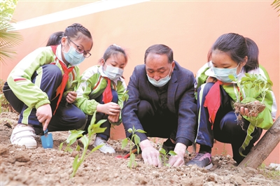 近日,安徽省淮北市第三實(shí)驗(yàn)小學(xué)教師帶領(lǐng)學(xué)生在勞動(dòng)實(shí)踐基地上農(nóng)耕教育課。該校把“農(nóng)耕教育進(jìn)校園”作為特色教育之一,利用校園內(nèi)的空閑地塊開辟出勞動(dòng)實(shí)踐基地,開設(shè)農(nóng)業(yè)生產(chǎn)知識(shí)第二課堂,讓孩子們?cè)谟H近自然、體驗(yàn)農(nóng)耕中增長(zhǎng)知識(shí),養(yǎng)成熱愛勞動(dòng)的好習(xí)慣。 萬(wàn)善朝 攝