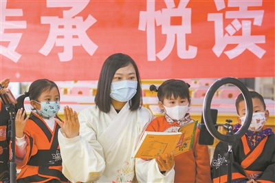日前,江蘇省如皋市少兒圖書(shū)館工作人員和幼兒園小朋友們一起進(jìn)行誦讀國(guó)學(xué)經(jīng)典線上直播。當(dāng)日,少兒圖書(shū)館開(kāi)展了“書(shū)香傳承悅讀經(jīng)典”閱讀活動(dòng),小朋友們參與誦讀國(guó)學(xué)經(jīng)典,感受中國(guó)傳統(tǒng)文化。