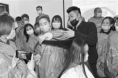 近日,甘肅省慶陽市慶城縣人社部門舉辦第三期154人參加的“精準(zhǔn)扶貧鄉(xiāng)村愛心理發(fā)員培訓(xùn)班”,這些來自鄉(xiāng)村的學(xué)員,學(xué)習(xí)多種男女理發(fā)技藝,培訓(xùn)考試合格后將返回各自所在鄉(xiāng)村的“愛心發(fā)屋”,為當(dāng)?shù)?0歲以上老人、殘疾人和特困供養(yǎng)人員免費提供理發(fā)服務(wù)。