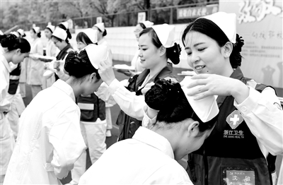 5月10日,湖州中等衛(wèi)生專業(yè)學(xué)校,援鄂校友為護(hù)理專業(yè)學(xué)生戴上燕尾帽。當(dāng)日,位于浙江省湖州市長(zhǎng)興縣的湖州中等衛(wèi)生專業(yè)學(xué)校舉行新護(hù)士“授帽傳燭”儀式,援鄂校友返校為護(hù)理專業(yè)學(xué)生授帽,傳承護(hù)理匠心與仁愛奉獻(xiàn)理念,迎接國(guó)際護(hù)士節(jié)。